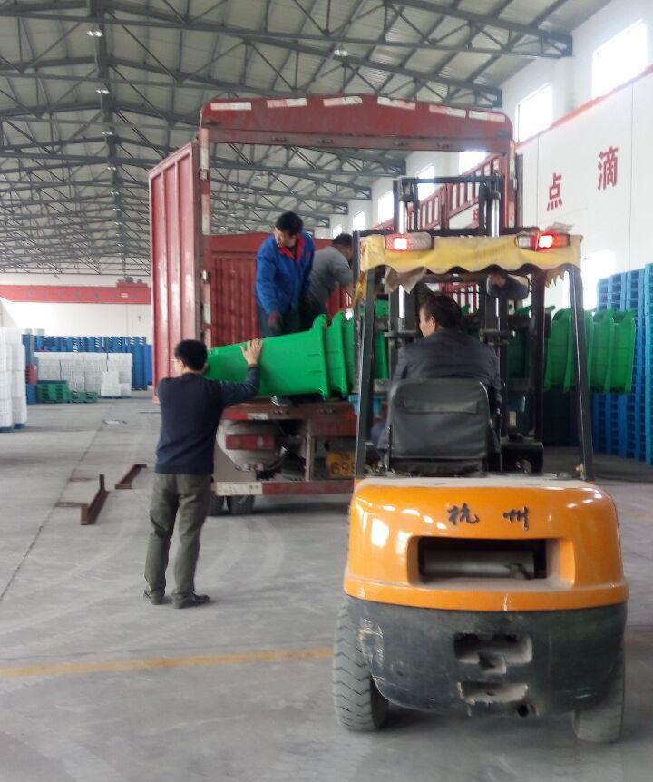 塑料垃圾桶装车发走